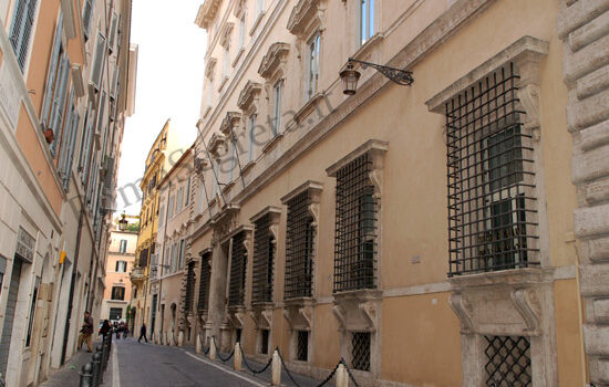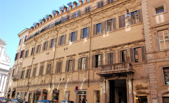 Palazzo Ginnasi, situato su Largo S.Lucia Filippini, sostituisce l’antico palazzo della famiglia Ginnasi, parzialmente demolito tra il 1935 ed il 1940 in occasione dell’allargamento di Via delle Botteghe Oscure,