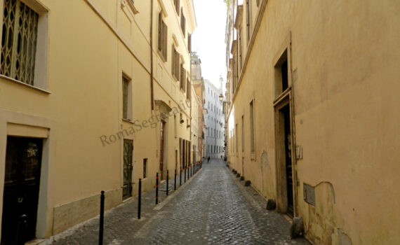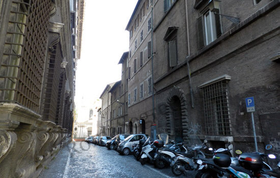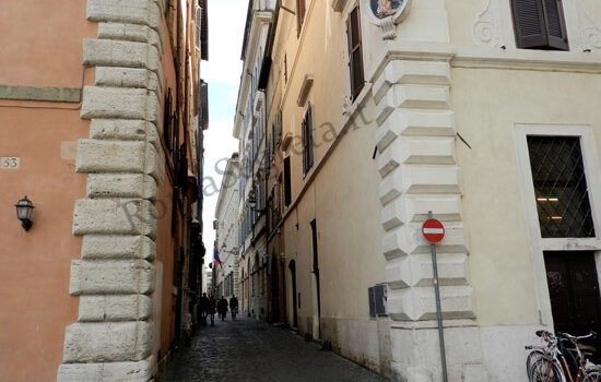 (Rione Regola) Nel Medioevo Via Giulia era un’importante arteria stradale tanto da essere definita “Via Magistralis” perché reputata una via maestra, anche se tortuosa e fangosa