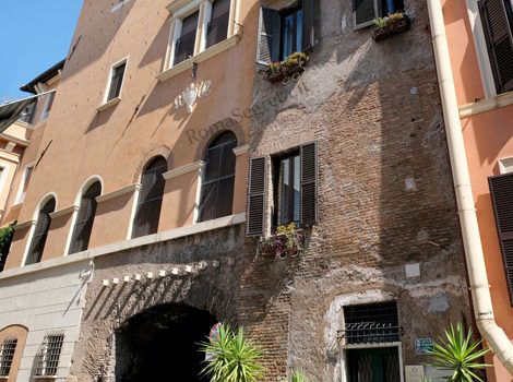 Porta Settimiana segna l'inizio di Via della Lungara ed è la porta settentrionale di quel triangolo che includeva il rione Trastevere all'interno delle Mura Aureliane