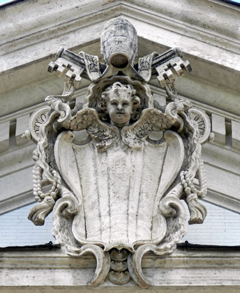 Lo stemma (nella foto 2) e l’iscrizione che corre sulla facciata ricordano la ricostruzione effettuata nel 1751 per volontà di Papa Benedetto XIV. L’interno è a croce greca e sul pilastro a destra dell’ingresso un’epigrafe duecentesca ricorda come nel 1256 Papa Alessandro IV avesse fatto restaurare la chiesa e trasferire qui le reliquie dei due santi, Marcellino prete e Pietro esorcista, martiri sotto Diocleziano, dalla omonima chiesa situata sull’antica Via Labicana (oggi Via Casilina), sorta sulle catacombe dove i due santi furono sepolti. Sull’altare maggiore vi è un dipinto di Gaetano Lapis con la scena del Martirio dei due Santi, mentre l’altare di destra conserva una Messa di S.Gregorio di Filippo Evangelisti.
