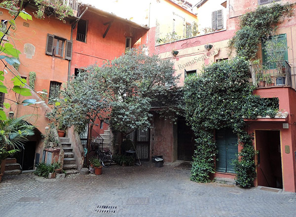 L’Arco degli Acetari (nella foto sopra) si affaccia su Via del Pellegrino ed immette imprevedibilmente in uno scenario d’altri tempi: un cortile (nella foto 1) su cui si affacciano casette con scale esterne tipiche dei borghi medioevali e caldi intonaci rosso-ocra, con balconcini e ballatoi a cui si avvinghiano meravigliosi rampicanti, un luogo intimo, appartato, dove il tempo sembra essersi fermato anche grazie al fatto che la piazzetta non si affaccia direttamente su strada.
