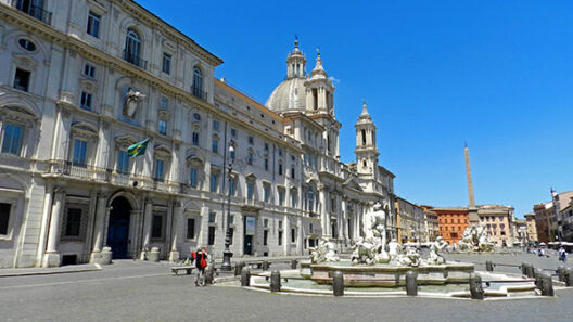 Piazza Navona, la più bella piazza barocca di Roma, occupa la pista dell’antico Stadio di Domiziano, o Circus Agonalis, del quale ha conservato perfettamente la forma rettangolare allungata dell’arena, con uno dei lati minori (quello settentrionale) curvo, mentre gli edifici circostanti occupano il luogo delle gradinate della cavea. Lo Stadio fu fatto costruire da Domiziano … Leggi tutto Piazza Navona