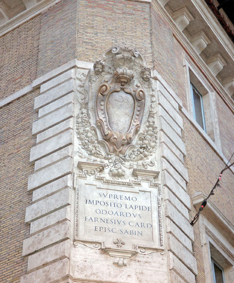 Sopra l’edicola si trova un grande stemma del Cardinale Odoardo Farnese (nella foto 6) e la seguente iscrizione: