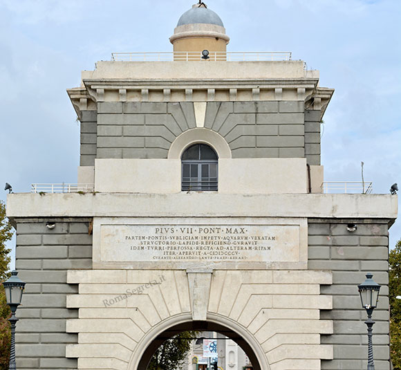 ovvero “Pio Settimo Pontefice Maximo restaurò il ponte e la torre con opere di ampliamento nell’Anno del Signore 1805”.