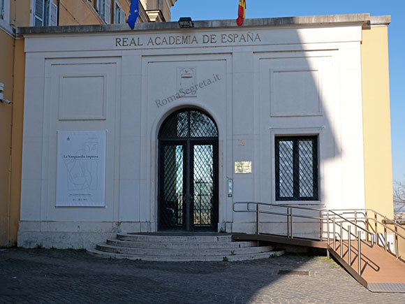 A fianco del chiostro è situato l’edificio (nella foto 2) della Real Academia de Espaňa risultante dalla trasformazione dell’antico convento francescano. L’Accademia promuove la formazione artistica e umanistica di creatori e ricercatori con lo scopo di ottenere una maggiore presenza culturale spagnola in Italia e una maggiore comprensione delle culture di entrambi i paesi.